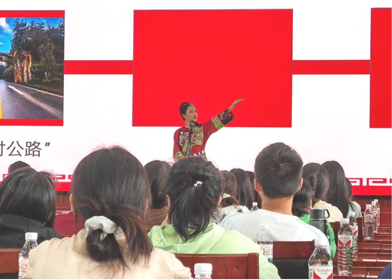 在演讲的舞台上,陈晨旭亦绽放出璀璨光芒。大一初涉演讲时,她还是个磕磕绊绊的“演讲小白”,舞台恐惧一度让她心生退意。但对家乡的深情与对表达的执着,让她不愿轻言放弃。日复一日的练习,发音、表情、肢体动作,每一次的排练都让她多一份底气。最终,当她身着苗服站上舞台,湘西的山水人文、民族的交融共生都随她的话语娓娓道来。在首届 “铸牢中华民族共同体意识・讲好中国故事” 主题比赛中,她凭借真挚的情感、流畅的表达与深厚的文化底蕴,一举斩获演讲、写作双赛道一等奖;而后更肩负学校期许,站上湘潭市主题演讲的赛场,在更大的舞台上,让湘西的故事被更多人听见,让民族文化的魅力持续传递。