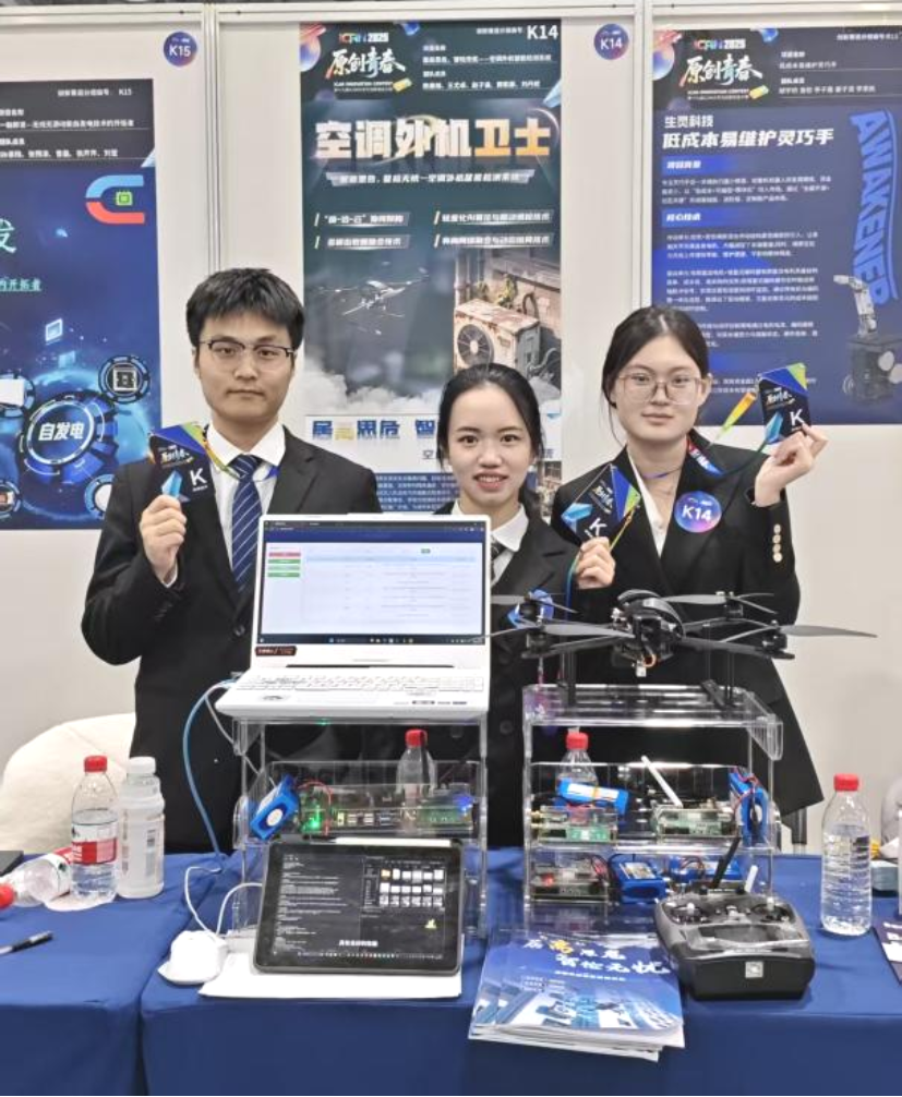生活中的细心观察,让她的科研更具温度。留意到老旧小区空调外机锈迹斑斑,且因高空作业难以检测,晨旭萌生了研发智能检测系统的想法。她带领团队将无人机平台与嵌入式技术相融合,打造出“空调外机智能检测系统”,实现了运行数据的高效采集与稳定传输。这项创新成果让她坚定了 “科技服务生活”的信念。